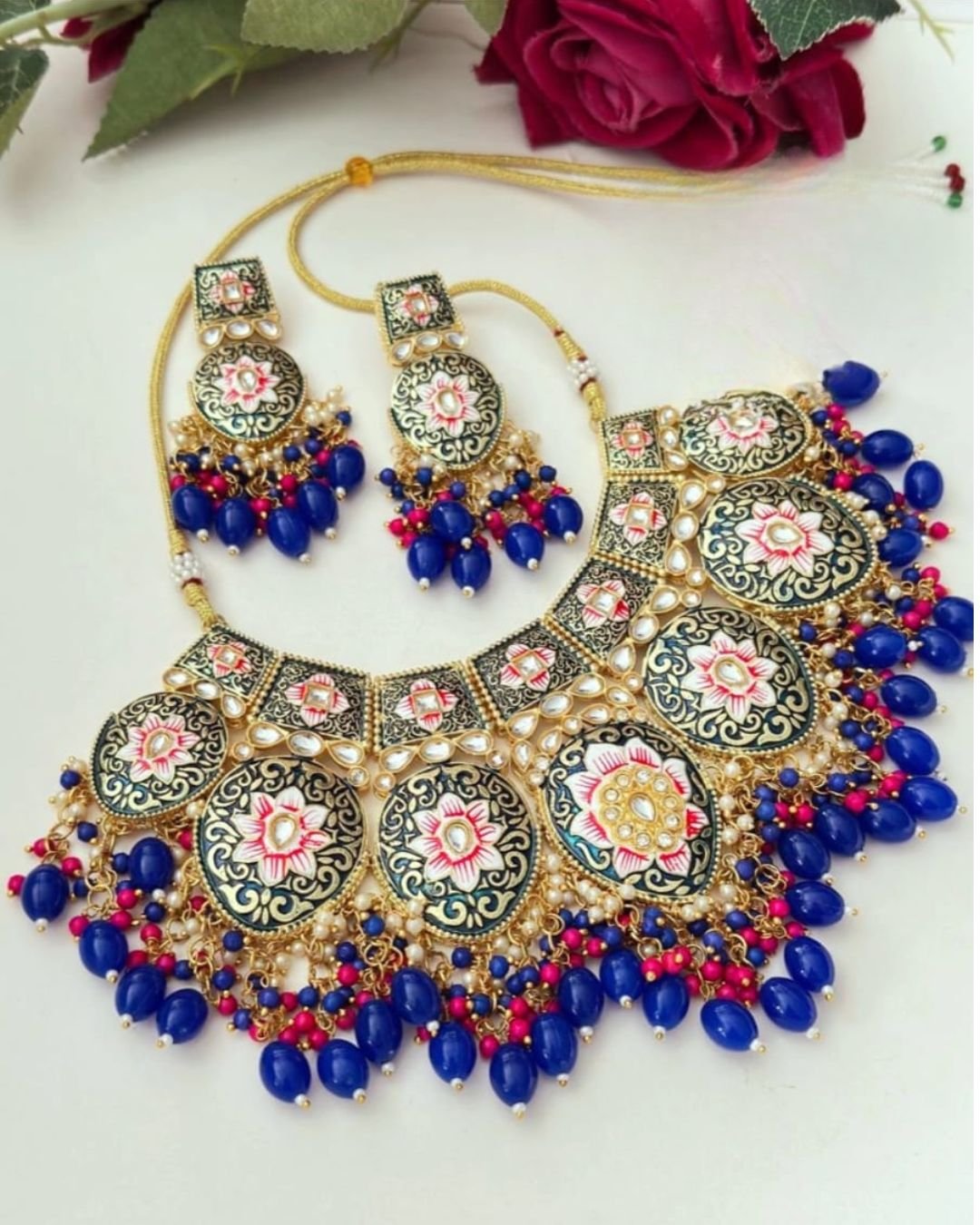 Material: Alloy base with hand-painted Meenakari work, Kundan stones & glass beads