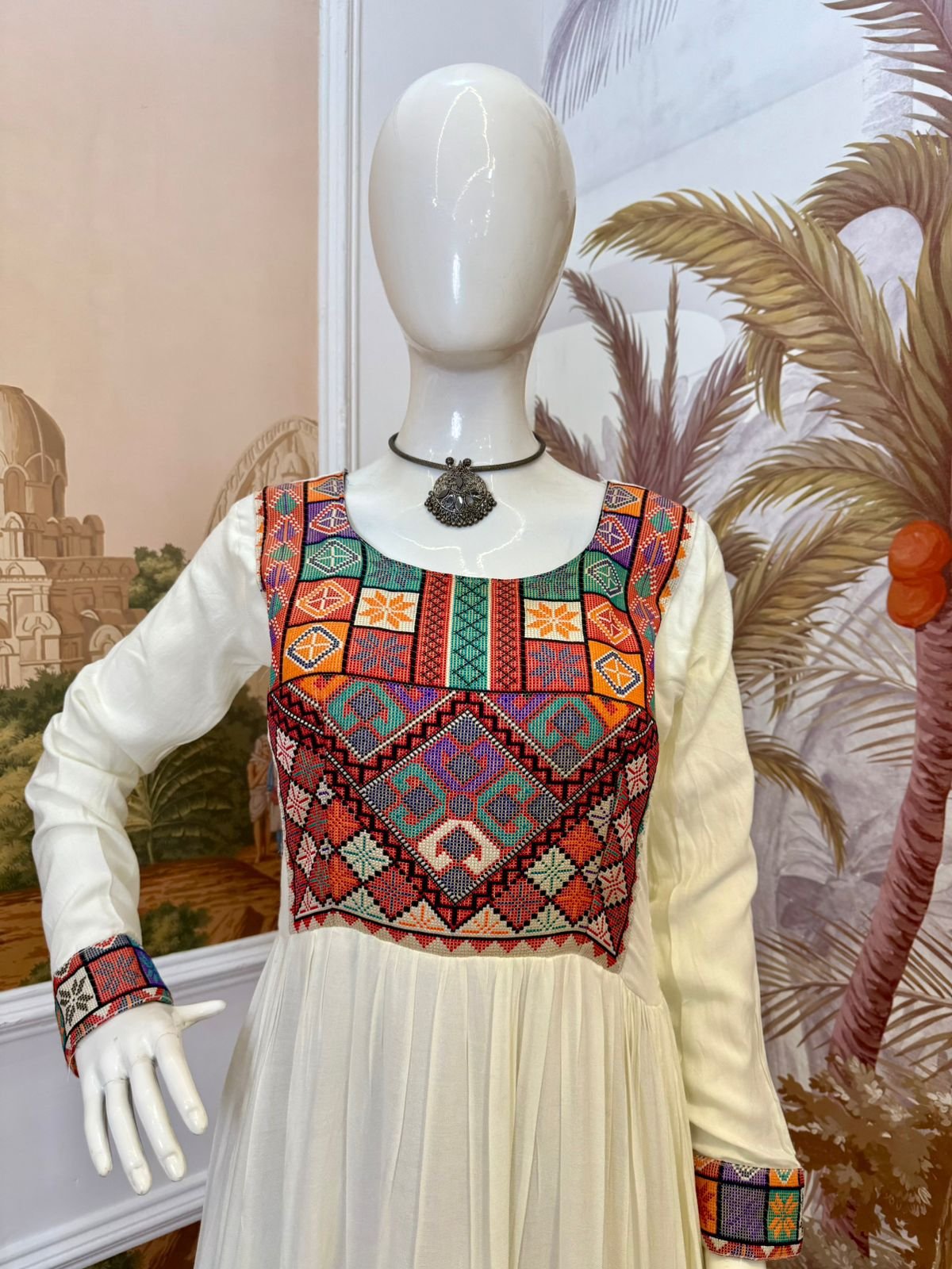• Work: Gamthi Jacquard Weaving Neck + Lace Border