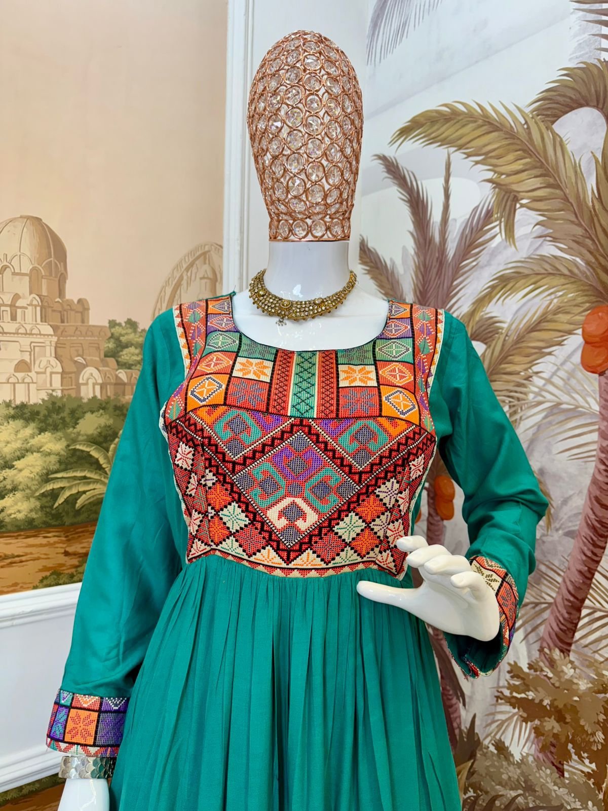 Unveil your ethnic elegance with Sajdeya’s Exclusive Real Modeling Gamthi Jacquard Gown — a perfect blend of tradition and modern charm. Designed in rich 14 KG heavy rayon fabric, this gown ensures unmatched smoothness, comfort, and flow.